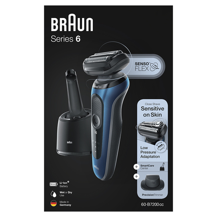 Электробритва Braun 60-B7200CC располагает функцией очистки, которая в автоматическом режиме устранит все накопившиеся волоски. Основу данного прибора составили 3 плавающие головки, следующие за каждым изгибом вашего лица для получения непревзойденного результата. Устройство дополнено несколькими индикаторами, сигнализирующими о необходимости заменить ножи и произвести зарядку аккумулятора.