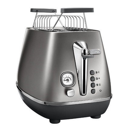 В основе тостера DELONGHI CTI 2103.S мощный нагревательный элемент 900Вт. Для прожарки предусмотрены два отдельных слота для хлеба. Используется нескользящее основание, корпус тостера выгодно отличается матовой металлической отделкой с хромированными деталями. Имеется удобная подставка, позволяющая подогревать выпечку.