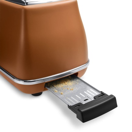 Коллекция ICONA VINTAGE. Мощность: 900 Вт. Количество тостов: 2. Количество степеней нагрева: 6. Количество кнопок: 4. Функции: подогрев, размораживание, односторонний подогрев, отмена. Решетка. Нескользящие ножки. Кнопки с неоновой подсветкой. Цвет: коричневый.
