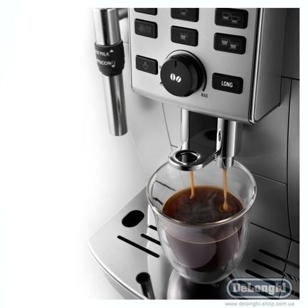 Электронное управление обеспечивает возможность автоматически включаться прибору ecam 23.120 sb в работу, а затем, после выдачи кофе, выключаться. Отсутствие включения в сеть в период простоя ведет к энергосбережению. Центральный блок для заваривания сделан съемным. Это упрощает эксплуатацию изделия ecam 23.120 sb delonghi, его очистку и мытье, увеличивает ресурс работы.