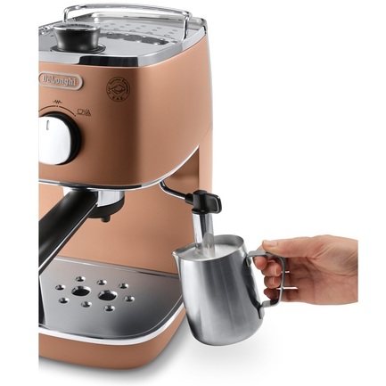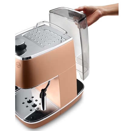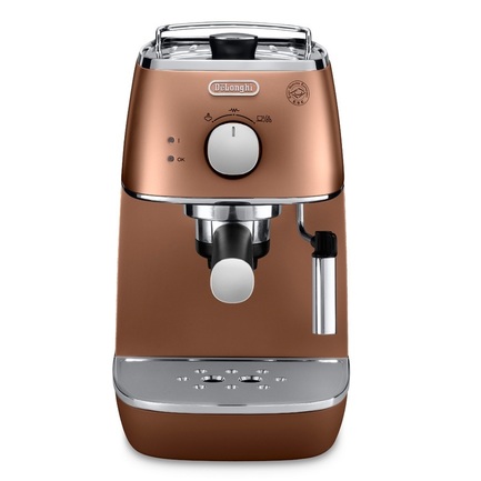 Коллекция DISTINTA. Мощность: 1050 Вт. Давление: 15 бар. Контейнер для воды: 1 л. Система «Капучино». Два крема-фильтра. Регулировка интенсивности подачи пара. Подогрев чашек. Темпер. Цвет: медный.