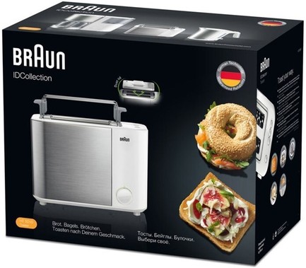Новые тостеры Braun IDCollection Тостер позволяют с легкостью выбирать, как приготовить хлеб, бейглы и булочки. Найти идеальный вкус легко благодаря 13 вариантам поджаривания, позволяющих приготовить идеальные тосты — от нежно-золотистых до хрустящих темно-коричневых. Также доступна решетка для приготовления булочек и специальная функция для приготовления бейглов. Помимо этого доступен специальный предотвращающий протечки контейнер для сэндвичей — только в тостерах Braun. Узнайте, как быстро можно приготовить вкуснейшие горячие закуски.