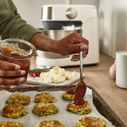 - 1,4-литровый миксер (фуд-процессор) с 3 дисками в комплекте: оснащенный стальными лезвиями для измельчения и дисками для резки/шинковки (средней и крупной) и тёрки для драников, он идеально подходит для приготовления салатов, соусов, соусов, тертого картофеля и сыра или приготовления овощей для супов и тушеных блюд.