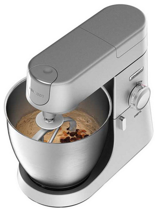 Кухонный комбайн британской марки Kenwood поддерживает планетарное смешивание и комплектуется вместительной металлической чашей на 6.7 литра, что позволяет за один раз качественно и быстро замесить, взбить или измельчить большие порции продуктов. Сердцем устройства является 1200-ваттный силовой агрегат с бесступенчатой регулировкой скорости. Он поддерживает импульсный режим, который повышает эффективность обработки даже твердых продуктов без экстремальных нагрузок для мотора. Кухонный комбайн Kenwood KVL 4100S Chef XL комплектуется венчиками для взбивания и приготовления кремов, крюком для замеса теста, К-образной насадкой для заготовки пюре и паштетов. Дополнительные аксессуары представлены пластиковым шпателем и защитным щитком от брызг. Модель отличается стильной внешностью с расцветкой под нержавеющую сталь. Сам корпус выполнен из этого металла, что должно позитивно отразиться на надежности и долговечности прибора.