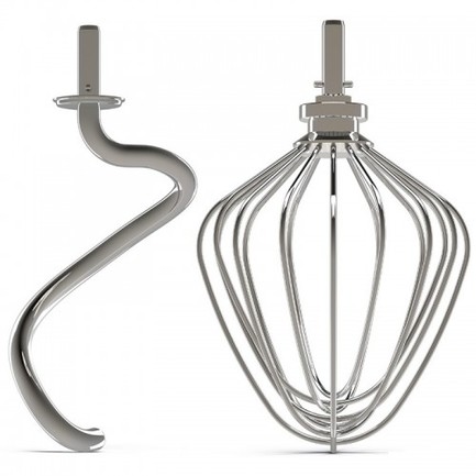 Точно такой же, как и те, которыми комплектуются миксеры, но более широкий и жесткий. Назначение – быстрое взбивание яиц и приготовление «воздушных» десертов. Кремы, муссы, взбитые сливки являются прямой специализацией для этой насадки.