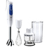 Погружной блендер мощностью 700 Вт. Два скоростных режима (стандартный и турбо). Комплектация: измельчитель на 0,35 л, венчик, мерный стакан.