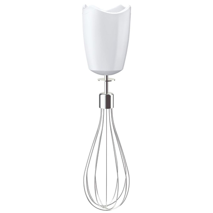 В комплекте к нему идёт мини-измельчитель, венчик для взбивания и подходящий по размерам мерный стакан. К нему также прилагается насадка, созданная специально для того, чтобы препятствовать разбрызгиванию продуктов.