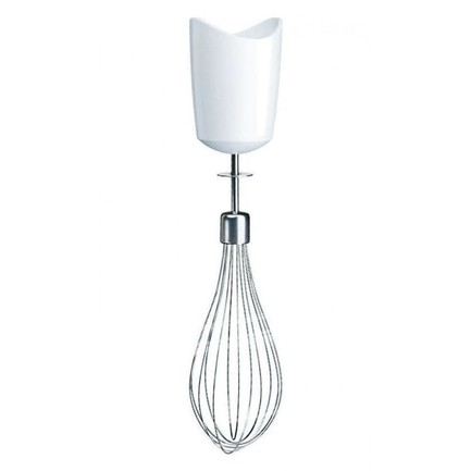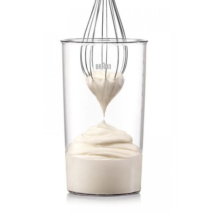 Комплектация включает в себя, помимо насадки для измельчения, измельчитель объемом 350 мл и металлический венчик для взбивания. Измельчитель пригодится для обработки мяса (очищенного от костей и хрящей), сыра, шоколада, зелени, орехов, овощей и фруктов. Венчик позволит быстро взбивать в пышную массу белки с сахаром, готовить крем для торта, омлет или жидкое тесто для блинов. Все насадки можно мыть в посудомоечной машине, моторный блок следует протирать влажной тканью.