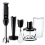 Блендер поставляется с венчиком из нержавеющей стали, который взбивает равномерно любую массу, придавая ей легкую и пушистую текстуру. Измельчитель на 500 мл идеально подходит для эффективного нарезания небольших порций ингредиентов, а практичный мерный стакан на 600 мл значительно облегчит повседневное приготовление пищи.
