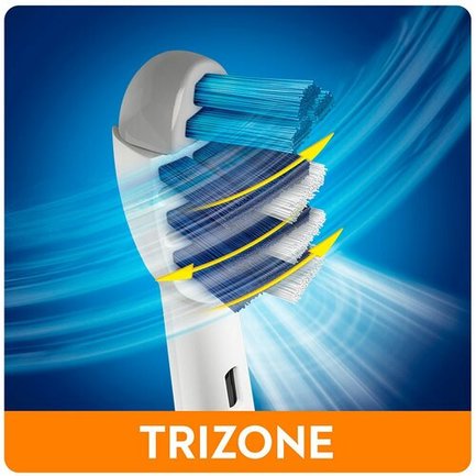 Braun Oral-B Trizone EB30 2 обеспечивает тщательное очищение зубов, благодаря перекрестным движениям щетинок. Короткие щетинки помогают в тщательной очистке поверхности зуба, а длинные щетинки для более глубокой чистки между зубами. Насадки EB30 отлично удаляют до 100% налёта между зубами.