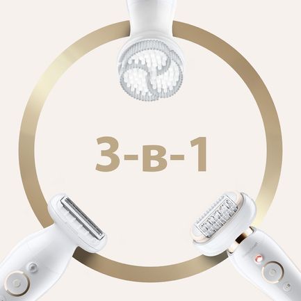 В комплектации с эпилятором Braun Silk_epil 9 SES 9030 3D идут специальные насадки, которые сделают уход за телом еще эффективнее. Благодаря щеточке для пилинга вы сможете быстро избавится от ороговевших частей кожи, а триммер и бреющая головка моментально превратят эпилятор в полноценную бритву. Невозможно обойти стороной и точечную насадку, которая позволит эффективно удалять волоски в деликатных зонах лица.