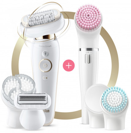 Эпилятор, Насадка для более близкого контакта с кожей, Бритвенная насадка, Насадка-триммер, Насадка для мягкого пилинга кожи тела, Насадка для лица, Щёточка для нормальной кожи, Эпилятор для лица Braun FaceSpa, Щёточка для пилинга лица, Щёточка для нормальной кожи лица, Насадка-спонж, Щёточка для чувствительной кожи лица, Блок питания, Щёточка для чистки