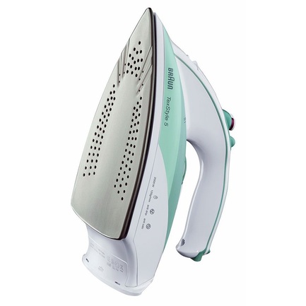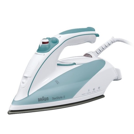 Braun TS 515 SI – великолепный утюг мощностью 2000 Вт оформлен в бело-голубых тонах. Устройство работает 2 способами — паровой и сухой глажки. Шаровой фиксатор провода питания не позволяет одежде сминаться при работе. Ручка устройства эргономичная, прорезиненная, антискользящая.
