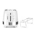 Элегантный, простой и лаконичный. DeLonghi CTLA 2103 W хорошо будет смотреться на любой кухне. Никаких лишних кнопок, только программы и регулировка степени обжаривания. Сверху два отдела для тостов. Все кнопки и регуляторы находятся с одной стороны. Корпус сделан и белого глянцевого пластика. Тостер устойчиво стоит на четырёх ножках. Так же внизу есть специальное углубление для хранения шнура. Также для удобства очистки есть поддон для крошек, который легко вынимается и чистится.