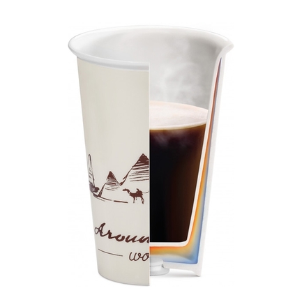 Кружка De'Longhi отлично подойдет для любителей необычного дизайна. Кружка выполнена из керамики, имеет двойные стенки и двойное дно, поэтому любимый напиток будет долго оставаться горячим. Материал крышки - безопасный силикон. Благодаря объему в 300 мл Вы сможете взять с собой любой напиток. Также кружку можно мыть в посудомоечной машине.