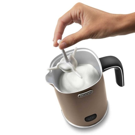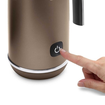 Для взбивания молочной пены. Объем взбиваемого молока: 100-140 мл. Вместимость молока для подогрева: до 250 мл. Горячее и холодное вспенивание. Мощность: 500 Вт. Съемная крышка. Антипригарное покрытие. Поворотная подставка на 360 градусов. Цвет: бронзовый.