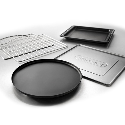 - В комплекте 2 решётки, противень, лоток для крошек, форма для пиццы