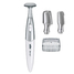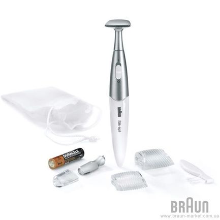 В комплект этого устройства входят щеточка, защитная крышечка, батарейки, два гребня для зоны бикини и насадка Т-образной формы. Все это компактно помещается в специальную косметичку. Триммер работает на батарейках, что делает данное устройство полностью автономно. Это позволяет пользоваться им в любых условиях, например, в ванной. Груммер имеет небольшой размер и очень удобную форму.