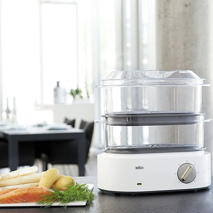 Cтильная пароварка Braun FS 5100 White будет превосходным подарком для тех, кто заботится о своем здоровье и старается правильно питаться. Этот прибор поможет быстро приготовить вкусную и здоровую пищу, в которой сохранятся все необходимые полезные вещества. С помощью пароварки также можно готовить детское питание. Она оснащена уникальным паровым ускорителем, которому потребуется менее минуты, чтобы начать приготовление пищи. Он гарантирует генерацию пара всего за 45 секунд. Вам не придется тратить время на ожидание нагрева прибора. Купить FS5100 White – отличное решение для тех, кто хочет питаться полноценно.