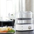 Прибор выполнен из материалов высокого качества, которые не содержат в своем составе вредное вещество бисфенол А, вы можете без опасений готовить в нем для детей. Пользоваться пароваркой очень удобно, все, что вам нужно сделать – налить воды в основание прибора, поместить продукты в паровые корзины и установить таймер (до 60 минут). Вам не придется следить за приготовлением или помешивать блюдо, можете спокойно заниматься своими делами, а пароварка автоматически выключится и сообщит вам об окончании процесса при помощи звукового сигнала.