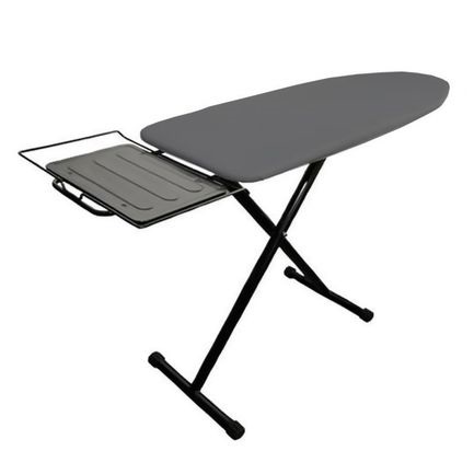 Проработанная конструкция (в лучших немецких традициях!) по-настоящему удобна, эргономична, позволят одним движением привести доску в рабочее положение. Также легко можно отрегулировать под свой рост и ее высоту. Ножки прорезинены, отличаются хорошей устойчивостью на самом скользком полу. Гладильная поверхность сделана специально зауженной с одной стороны, чтобы облегчить разглаживание рубашек и футболок, а покрытие из натурального хлопка без добавок порадует вас долговечностью. Высоким сроком службы может «похвалиться» изделие в целом – даже после длительного периода эксплуатации ничего не развинчивается, не разбалтывается и не появляются «лишние» детали. В сложенном состоянии доска занимает так мало места, что вряд ли станет помехой даже там, где на счету каждый сантиметр. Есть откидная подставка для утюга. С Braun IB 3001 BK и в самой малогабаритной квартире вы сможете гладить с комфортом!