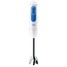 Погружной блендер мощностью 700 Вт. Два скоростных режима (стандартный и турбо). Комплектация: измельчитель на 0,35 л, венчик, мерный стакан.