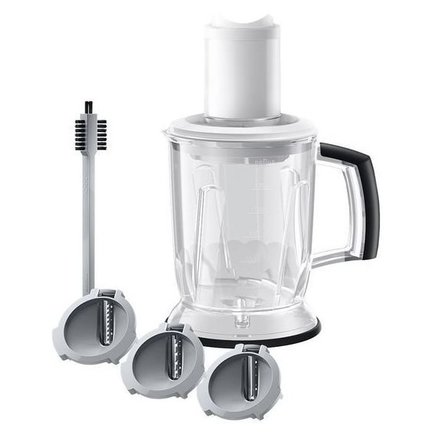 Универсальные насадкиДополнительные возможности по обработке прибор получает не только благодаря наличию спиралайзера. В его «арсенале» есть и кое-что посерьезнее. Например, мотор с предельной мощностью до 750 Ватт, а также с 21-й скоростью (плюс кнопка «турбо»). Или высокоэффективные ножи-измельчители. Металлическая блендерная ножка выполнена с использованием хорошо знакомых всем поклонникам кулинарной техники Braun технологий PowerBell и SplashControl. Расширение особой формы в нижней части предотвращает разбрызгивание, а пара прочных лезвий работает с более высокой эффективностью по сравнению с традиционными.