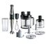 Погружной блендер серии MultiQuick 9. Максимальная мощность моторного блока: 1200 Вт. Количество скоростей: регулируемое. Цвет: черныйметаллик. В комплектацию входит: моторный блок с системой EasyClick Plus и технологией SmartSpeed (Type: 4200); металлическая блендерная ножка с острыми ножами из нержавеющей стали, выполненная по технологии ActiveBlade, PowerBell Plus и SplashControl;насадка кухонный комбайн XL на 2 л с дополнительными насадками: металлический нож для измельчения, крюк для замеса теста, терка-шинковка, крупная терка-шинковка, мелкая терка, крупная терка, насадка для жюльена, насадка для нарезки картошки Фри, насадка для нарезки кубиками; насадка измельчитель на 0,5 л с дополнительным ножом для колки льда;венчик для взбивания и перемешивания;мерный стаканчик с четкой мерной шкалой на 600 мл.