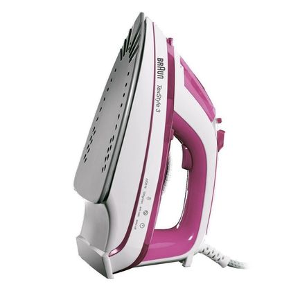 Утюг Braun TS 365 A тёмнорозового цвета имеет не только привлекательный внешний вид, но и высокое техническое исполнение. Мощный утюг (2200 Вт) имеет керамическое покрытие рабочей поверхности, которое позволяет легко скользить по тканевой поверхности любого типа. Вместительный резервуар для воды на 300 мл избавит от необходимости слишком часто доливать воду. Шнур длиной в 2 метра имеет шаровое крепление, которое обеспечивает свободное вращение и не позволит скручиваться.